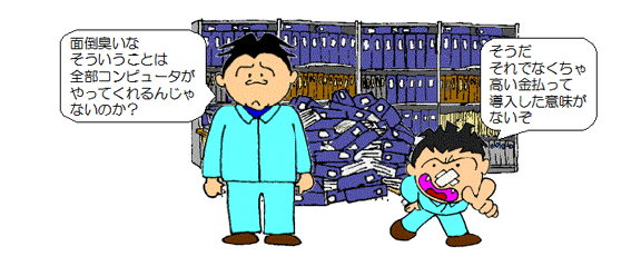 | 標準化が不十分なまま、 出来合いのシステムに飛びついて 形だけの導入をしてしまうと、 管理がうまく回転しないだけでなく、 システムの制約に縛られてしまって、 改善活動もやりにくくなっている例が とても多いのです。 |