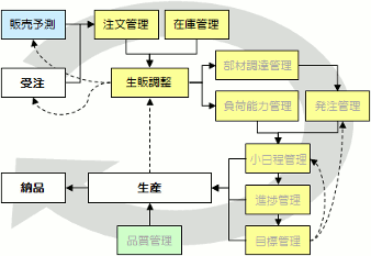 | 4.販売計画の精度向上 5.生産同期化の仕組み 6.リードタイムの短縮 7.負荷・能力管理 8.部材調達管理 9.スケジューリング |