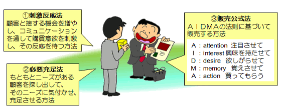 セールス理論としての、顧客アプローチ方法としては次のようなものが有名です。 |