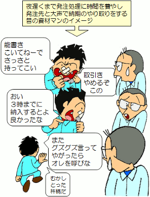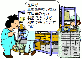 一方、生産計画に基づいて部品展開すれば 計算で必要量を求めることができます。 計画が大きく変動しない限り 余分な在庫を持つことはありません。 したがって、 担当者は自己流の発注方式を考案し、 生産計画を受け取る都度、自分なりに 数量を計算して発注していました。 そして、発注先にムリがきく担当者が 優秀な資材マンと言われました。 問題は計算の量でした。 煩雑さにやむを得ずKKDを織り込んで、 在庫にする失敗はいつものことでした。 |
