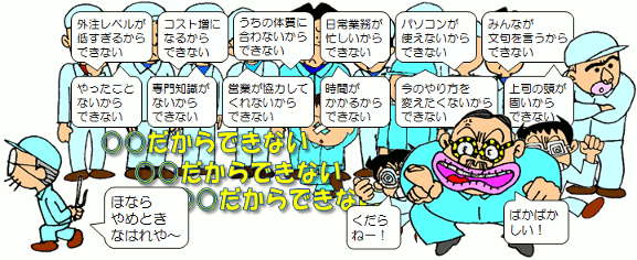 システムの計算結果に基づいて発注しても、 実際にものを作り、納入するのはコンピュータではありません。 現場はシミュレーションとは違います。 また、合理的な発注方式を手に入れても、 計算の元になる生産計画の精度が悪ければ、ただの数字遊びに過ぎません。 やはり、標準化や営業情報の精度向上、生産同期化の仕組み確立といった これまでの話を抜きに考えることはできないのです。 前提はこれまでお話ししてきたことが整備され、ちゃんと機能していることです。 ところが・・・ |