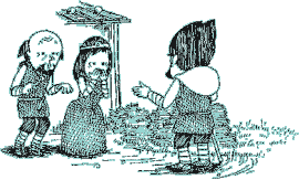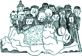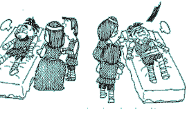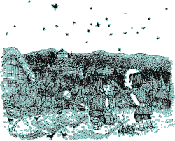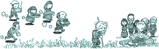 | Ateli grew rapidly. But Doma became so obese that he couldn’t walk alone due to overeating and lack of exercise. He had heart trouble and was ill in bed. When Ateli had grown up and summer had come, Doma easily died in bed. | ||||