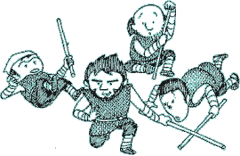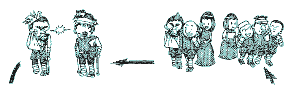 | 6 Domi told villagers that the king should have guards around him. So some villagers alternately stood in front of the palace in spare moments from their work. And Domi said that guards should train and strengthen themselves at any time in order to provide for wars. So guards were building up their bodies by wrestling with each other or practicing fencing using wooden sticks. |