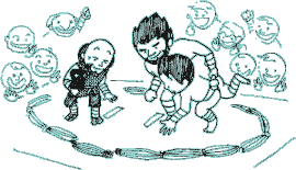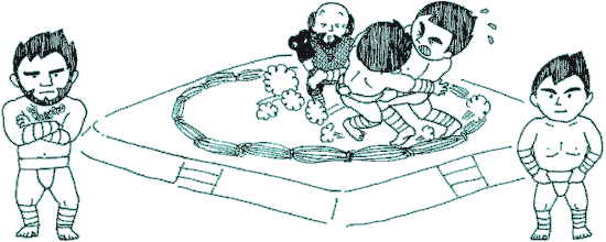 a festival to celebrate the good harvest. The best pleasure for villagers was the wrestling tournament that was held in the festival. Powerful men in the village practiced very hard in order to be the champ. |
