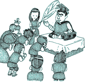 | Eastern villagers would like to serve Oppo, so they asked Ateli to be the king. But clever Ateli who knew Oppo desired the throne refused villagers’ request and said that it would be better if Oppo became the king in place of him. Villagers agreed with him. | ![]() |