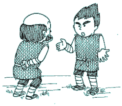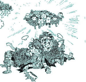 | But Spal faced an unexpected opponent at the final. The opponent who won through the hard semifinals was none other than Ateli. | Young Ateli who didn’t know wrestling very well at first nearly lost every fight. But he got the knack through winnings by a narrow margin that was sometimes helped by opponents’ failures, and he became stronger every time he fought. | |||
