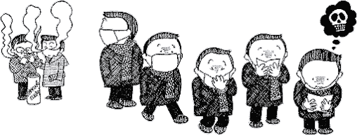 | TANOMUKARA KIRAKUNI SUWASERO TABAKO KURAI MATA NEAGEKAYO KANBEN SHITEKURE Let me smoke comfortably please. The price rises again? Give me a break! KONOKUNI NI KITSUENSHA HODO KENJITSUNI NOUZEISURUMONO HOKANIHA ARAJI In this country, there’s no one but smokers to pay taxes steadily. |