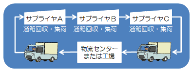 巡回集荷を意味するロジスティクス用語。メーカーの部品調達物流効率化方策の一つ。納品量が車単位にならないような小規模部品メーカーを回って集荷する。