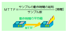 MTBFの場合は、何度も修理して使う装置や機械についての指標であるのに対して、MTTFは修理しないで使い捨ての場合の信頼性を示している。