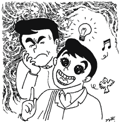 | 上杉君とにらめっこしていた武田課長、思いついたように 「よし、じゃ、今までの上杉の改善提案を振り返ってみよう。ナクス作戦は何がヒントだった?」 そういえば、ナクス作戦はグラウンドの脇の物置小屋から思いついた作戦だった。ナガラ作戦は遅刻ギリギリ間一髪セーフから、トリカエ作戦は野球のトレードからのヒントだった。いずれも職場の改善とは関係ないところからの発想だった。 「それそれ、ヤサシク作戦も、ヤサシクするためのヒントはどこにでもあるということなんだ。つまり、作戦遂行の手順みたいなものがないというか・・・いや、ヒントを得るための手法はいろいろとあるんだが、すべてにそれが使えるというわけでもないんだ。 「うーん、これは難しいなぁ」 「要するに発想を豊かにすることと、アイデアをバカにしないことが必要なんだ。そうだな・・・上杉は改善を面白いと思うか?」 「・・・正直言って、最初は改善提案なんて重荷でした。仕事をこなすのが最優先で考えるヒマもなかったし、なにかやってもほとんど効果なかったですから」 「今はどう?」 「今は面白いです。あれこれ試行錯誤して、ふっとアイデアが浮かんだときの快感と、それが実際にできて、みんなが喜んだときの達成感は最高ですね。特に、なんでこんなことに今 まで気付かなかったんだろうっていうときは、なんとも言えないですね」「ヤサシク作戦の一番のポイントはそこんところなんだよ」 ヤサシク作戦のポイントをあえて並べるなら、まず第一に直面する問題にじっくり取り組むこと。悩んで悩み抜いてどうにも解決策が出ないようなら、全く違うことをやって脳ミソを休ませる。本気で取り組んでいるなら、そんなときでも潜在意識の中に問題が残っているものだ。そうすると、ひょんなきっかけで解決のヒントをつかむことがある。 パァっと目の前が開けていくようなハッピィな感じ、そんな経験をしたことが誰にでもあるのではないか。 |