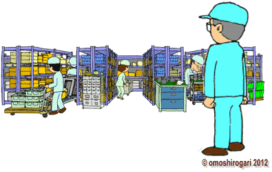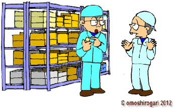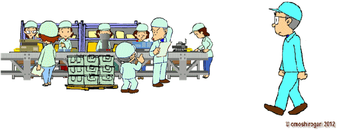 [脚注] 資材 物を作る元となる材料や部品のこと。 先入れ先出し 先に入庫したものを先に出庫して使うこと。つまり、古い物から出して使うこと。倉庫の保管物を良好な状態で回転させる方法。 配膳 必要な資材を製造場所に持っていって準備すること。 改善 悪い状態の問題を解決して良い状態にすること。 手配 必要な資材を調達するためにメーカーや販売店に注文を出すこと。 在庫 企業が保有する財産が部品や製品など物の形で留まっている状態。そのままでは新たな価値が生じていない状態の物。 資材費 物を作るときに必要な材料・部品にかかった費用。 |