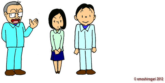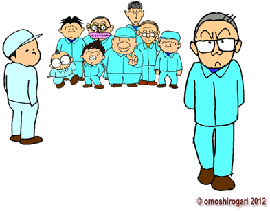 今年の新卒採用者が うちの工場にも二人 少子化で 若い人が減っているから というとそうでもない この不況の中どうしても 安定志向というか 有名企業や公務員に志望が集中する うちのような 地味な中小企業に 応募してくる若者は ほとんどいないのだ |