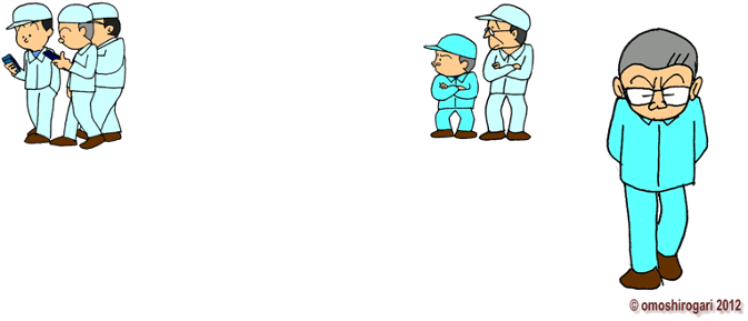 今の課長や職長の顔ぶれは 当時とほとんど変わらない その下は 離れた若い世代で 仕事の責任を持たせるには まだまだ経験と知識が 不足している 何が問題かって?オレたちと若手との 世代ギャップが大き過ぎて 固有技術やノウハウが うまく継承できないのだよ |