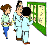 | この目標を、食堂や階段の踊り場など 通行の多いところに貼り出して、 みんなに公表します。 また、活動がスタートしたら、 進捗状況を示したグラフも 一緒に公表します。 |