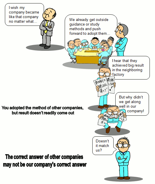 | When you adopt the method of other companies, you must take much time for customization. The good result is never provided by the imitating only for appearances and simple rehash. |