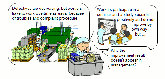 | This is an example of the company which is advancing improvement-in-quality activity comparatively eagerly. The subsection chief and leader of the spot are satisfied with the activity cleared favorably of the target. Communication with a subordinate is also active and the mood in the workplace is not bad. Nevertheless, trouble of the manager who is higher than a section manager is... |