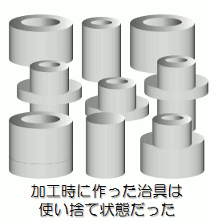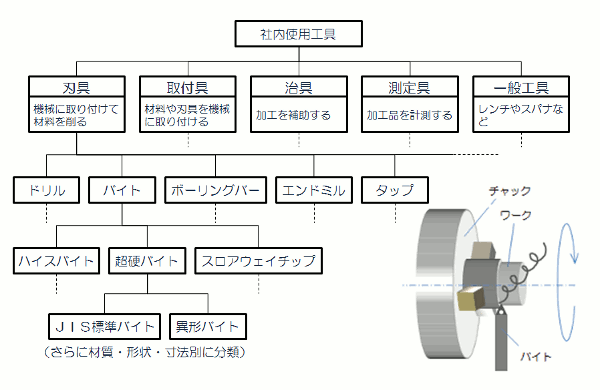 分類ができたところで工具一つ一つに社内用のコードを付けました。工具の分類をしただけでもかなり見通しが良くなりました。 Compare 〜比較する JIS標準の工具だけなら、工具係が員数管理やメインテナンスをすることができます。 ところが、実態がよくわからなくて、工場の中を煩雑にしているのが治具と異形刃具でした。特に治具は、同じ形状のものがいくつも作られて埃をかぶっており、中には錆びているものもあります。 そこで、これらのどんなものがよく使われているのかを調べることにしました。 Choose 〜選択する同じ材質・形状のものが複数ある治具は、よく使われていると考えることができます。 これらは、以前作られたものを再利用すれば良いのですが、いつも作りっ放しで適当な場所に放置しているため、探すよりも作った方が早いという理由で、こんなに増えてしまったのです。 そこで、よく使われる治具と異形刃具は社内標準として工具室で管理することとしました。その他の特殊工具も履歴を残して再利用できるようにしました。 この結果、新しい治具が作られなくなって材料費が軽減できました。また、加工方法の情報交換がされるようになって、作業の個人差が少なくなり品質が安定してきました。 4.標準化後の3つのプロセス 4つのCで標準化を進めた後、標準を有効に活用するために、作る・守る・変えるという3つのプロセスが必要です。 |