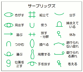 2.仕事を観察する 青年ギルブレスは、レンガ積みという作業をどんなふうに観察したのでしょうか。 レンガ積みは、次のような2つの単位作業で構成されています。 ![]() もう少しよく観察してみると、どんなことをしているのかが見えてきます。 ![]() でも、これではまだ何が問題なのかわかりません。もっとじっくり観察しましょう。 ![]() ここまで細かくしたら、人によってやり方の違いが見えてきました。例えば、Aさんはレンガをモルタルに置いてから位置を調整するのに、Bさんは位置合わせしてからレンガを置いていました。 さらに観察を続けます。 ![]() ここまで細かくすると、こうすれば良いのにと思うことがたくさん見つかりました。 みなさんはいかがですか?考えてみてください。(答は文末に) 現場に出て実際の仕事を観察すること。それも、ただ漫然と眺めているのではなくて、上の例のようにじっくり観察して動作に細分化していけば、改善の手掛りを得ることができます。 ギルブレスは、こういう見方をみんなができるようになれば良いなあと考えました。そのアイディアを提供したのが妻のリリアン(Lillian Moller Gilbreth 1878〜1972)でした。 彼女は、仕事の中に現れる18の要素動作を記号化して、誰でも簡単に分析できるようにしたのです。これにギルブレスを逆にしたサーブリッグズ Therbligs(sは記号が複数のため)と名付けたのは有名な話。言わば、最初のIE手法と言うべきものでした。 現在はもう、このクラシカルな手法が使われることはありません。 しかし、このギルブレスの観察から学ぶことはとても多いと思います。実際の仕事を観察する際に、どのように着眼し問題点を見出すのか、大いに参考にしていただきたいのです。 |