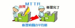![]() ![]() (2)MTTR(平均修復時間:Mean Time To Repair) MTTRは、修復時間の平均です。MTTRが長ければ保全性が低くて直しにくい機械と言えますが、短ければ保全性が高く扱いやすい機械と言うことができます。 |