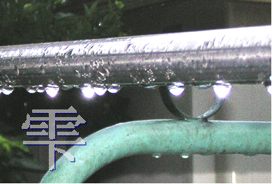 今朝は雨だ。いつもならスズメやヒヨの声と共に東の空が白んでくる頃合いなのに、暗い雲が重たく垂れ込めて聞こえるのは軒を叩く雨の音ばかり。 雨の日はよっぽど気持ちが乗らないと、散歩に出る気がしない。雨の中の山歩きで風邪を引いてこじらせたことがあって、その悪いイメージがどうも躊躇させてしまう。 昔から晴耕雨読などとも言う。ムリをして出かけるより家でじっとしている方が賢いと言い訳をして、ゴミを出し新聞だけ取ってきたら再び布団の中にもぐる。が、一度体が外の冷たい空気にさらされてしまうと、なかなか二度寝ということができない。 仕方なく窓から外をボンヤリと眺めていると、物干し竿から雨のしずくがポタポタ滴っている。 上から伝ってくる水を吸い込んで、ひとつひとつのしずくが大きくなり、自分の重みに耐え切れなくなってポトリと落ちる。ある時はとなりの玉と合体して、その勢いで右に左に揺れる動きがまるで生きているように見えるから面白い。それを何度も何度も繰り返し、一度として同じパターンで動くことがない。ようやく朝の光があふれてくると、ガラス玉のようにキラキラ光って、何とも言えず幻想的だ。 いやいや、こんなつまらないことに見入ってしまうなんて、まだ目が覚めずに寝ぼけているに違いない。起きろ起きろ。そう自分に言って顔を洗いにいく平凡な今朝の情景。 |
