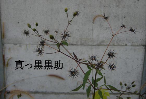 散歩から帰ってくると、上着に草の実がくっついていることがある。キク科のオナモミやヒユ科のイノコズチが代表的なものだ。よく観察してみると、周りに生えている剛毛の先がカギ状に曲がっていて、動物の毛や衣服の繊維に引っ掛かるようになっている。こんな単純な構造なのに、一度くっつくとなかなか取れないから、うまくできている。マジックテープはこれからヒントを得て作られたことをご存知の人も多いだろう。こうして他のものに付着して運ばれて、勢力範囲を広げて行くわけだ。自然というのは賢いものだと感心する。 縦長の黒い種子が放射状に付いているこの果実は、センダングサ(キク科)の痩果。インターチェンジの脇の、ほとんど人が通らない隘路で見つけた。まるでトトロに出てくる真っ黒黒助みたいな愛嬌があって、思わず微笑んでしまう。この実も、やはり種子の先に3本のカギが付いていて、人や動物に付着して運ばれていく。 昔の子供はこんなものが格好の玩具になって、先生の背中に悪戯をしたり、友達同士が敵味方に分かれて種投げ合戦をしたりした。外で手に触れるものすべてが玩具になったし、空き地や草むらがそのまま理科の教室だった。 いつからだろう、遊びにやたら金が掛かるようになってしまったのは。今さら声高に言いたいわけでもないが、こんな時にふと思ってしまうのである。あのころはみんな貧乏だったが、間違いなく精神的な豊かさに恵まれていたなあと。 |