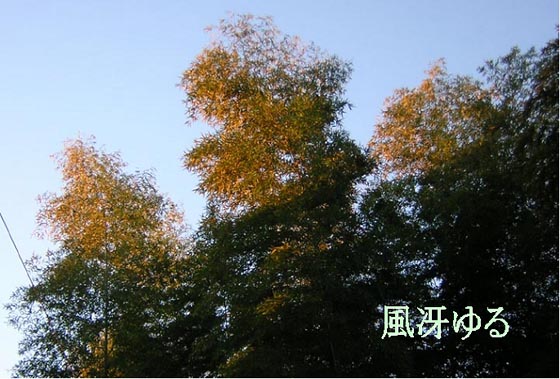 何の面白みもない坂道を降りていくときは、少し大またに腰を左右によじるように歩く。早朝散歩でウェストが小さくなったのはいいが、どうも横っ腹の脂肪だけが不自然に残っているような気がするために、下り坂では意識してそのように歩いている。とはいえ、犬の散歩などに出会うと、さすがにびっくりしたような顔をされるので、だれもいないのを見計らってからのトライだ。 ほっ、ほっ、ほっ、ほっ・・・勢いに乗ってスピードが出ると危ないから、テンポよく息を吐いて下っていく。これをやると、起きたばかりのボンヤリしている体がシャキッとして気持ちが良いんだ。 下りきってフーッと一息ついてから、水筒の水を飲もうとしたら、竹林の上の方だけが朝日に照らされているのが目に入ってきた。朝風に吹かれてゆらゆら揺れている。 目に見えないものは、別のものに触れて変化をもたらすことで自己を主張する。風は空気の流れだから、そのままではもちろん目には見えない。こうして木々の梢を揺らして、オレはここにいるぞとサインを出している。枝葉がかすれ合ってサーッという音になり、人はこれを風の音として聞く。 目に見えるものの変化に気付くこと、これがとても大事なんだ。それは、目に見えないもののメッセージかもしれない。こんなことを言うと、すぐ霊魂とか超常現象とか、わけのわからない怪しげな話を持ち出したがる人がいるが、我々の身の回りには目に見えないものが結構あるのだ。空気、ガス、匂い、電気、圧力、熱、時間、人の心・・・そういったものが悪戯をしたり、幸福をもたらしたりする。 今日も寒くなるぞーって言ってるのかな、この風は。 仰ぐこの竹の梢に風冴ゆる |