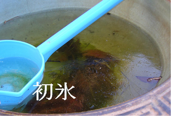 夕べ、珍しくTVドラマを見て夜更かしをしてしまった。いつもの時間に目が覚めたものの、とても布団から出る気にはなれず、今朝の散歩はなし。義務とは思っていないので、こんな日もたまにはある。とはいえ、外は滅法良い天気で、関東地方はこの冬一番の寒さ。朝のニュースに映された真っ白い富士を見たら、えらい損をした気分になってきた。布団の中で温もりをむさぼっていても、ブログの記事になるネタはない。やっぱり外に出ないと面白くない。 東京は初氷と天気予報で伝えていた。初氷か。散歩に出ても池とか湖があるわけでもないし、あんまり関係ないかなとつぶやきながら、雨戸を開けた。朝日が茶の間の中に入ってくる。 ちょうどその縁側の先だ。今は枯れて跡形もないが、以前、蓮を育てていた水瓶があって、それをのぞいてみると、おお見事に氷が張っておる。縁の部分を指でこすって上手く融かすと、大きな円いガラスみたいに取り外せるのだが、ガチガチに固まっていて柄杓の柄を持ってもびくともしない。その内、指先が痛くなってきたので、バカみたいな真似はやめた。 まだまだ大掃除も終わらず、寒い寒いとばかり言って入られない。もういくつ寝るとお正月。今日は立松と輪飾りを買いに行かなくては。 指先に痛み残して初氷 |
