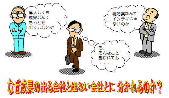 | 特効薬の効果が出てこないので、経営者は次から次へと 新しい特効薬を求めては挫折を繰返します。 |