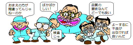 | 確かに、品質の意味をあれやこれや議論したところで、目の前の不良がなくなるわけではありません。しかし、品質の問題を解決しようとするときに、間違った認識のまま突っ走るわけには行きません。 「品質」は「問題」という単語と同様、基本用語なのにいい加減な解釈で使っている典型的なものです。 |