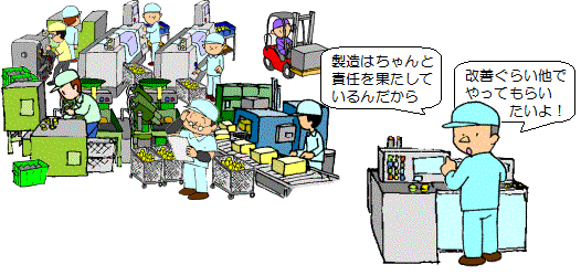 実際の現場はものづくりで忙しいのだから、改善なんて 品質保証とか生産技術のようなスタッフでやって欲しい。 |