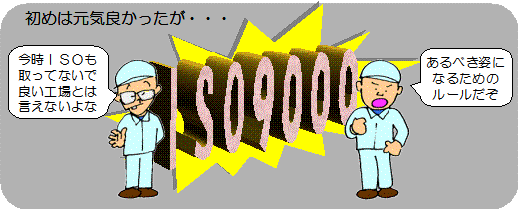 | セミナーの受講者の反応を見ていると、いつもここが一番うけるので、やはりISOで悩んでいる会社は多いんだなぁと感じます。 私自身はISOの専門家ではありませんから、規格の厳密なことまではよくわかりません。もし、ISOそのものについて知りたい・相談したいという場合は、認証機関や専門のコンサルタントに問い合わせた方が良いと思います。 私の場合、はっきり言ってこまごまとした決め事にはあんまり興味がないんです。要するに、決めたら守る、守ることによって品質保証・顧客満足が実現できるならば、それで良いのです。ルール化はほどほどにしておかないとヒューマンエラーのもとになります。 それより気になるのは、問題を放置しておきながらルールだけ守ろうとする本末転倒な状態を、だれも異常と感じず、変えようともしないことです。まるで、ISOを取ること、ISOを守ることが目的になっているような調子で品質管理を考えていたら、会社は立ち行かなくなります。それ自体が標準化の精神とはなはだしく乖離していると言わざるを得ません。 頭でっかちになって、できない理由ばかり並べる前に、目の前の問題から片付けていきましょう。もしかしたら、ルールなんかに頼らなくても品質確保できる問題かもしれませんよ。 |