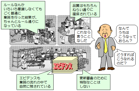 | ISO9000の認証を得ることは、 今やどの企業にとっても必須の要件です。 しかし、 認証を得ることだけが目的になっていると、 冒頭のような問題に陥ってしまいます。 |