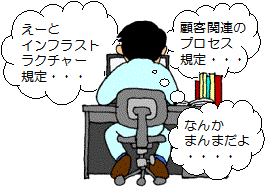 まずISOの要求事項ありきで、 どのようにしてそれに適合した プロセスや手続きを作るかの方が 重要だと考えてしまうようです。 |