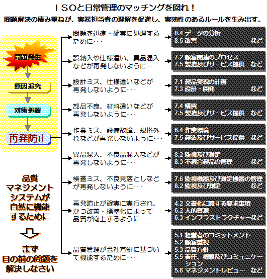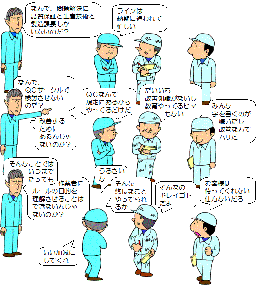 | 品質マネジメントシステムを生きたシステムに再構築するためには、 全員参加で品質問題の解決に泥臭く真剣に取り組む・・・ これしかありません。 |
