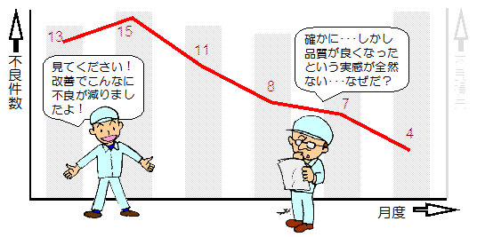 例えば、2.4でお話したように、 品質を件数で捉えて一生懸命分析しても 本当の問題は見えてきません。 |