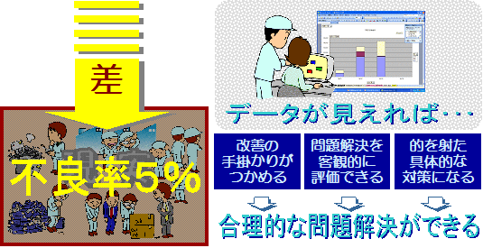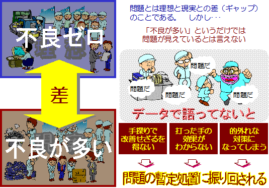 | 問題をデータで把握しデータで語ることは、 問題解決の最低条件と思ってください。 |