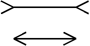 | 右は簡単な錯視の例ですが、 横長の直線部分は全く同じ長さですが、 一見したところでは上の方が長いように 感じます。 |