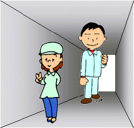 | 次の例は、 右側の男性が大きく感じられますが、 実は左の女性と同じ寸法です。 |
