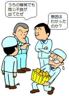 目の前の問題だけにとらわれないで、 ラインや工場全体を見渡して 同じ問題が起こってないか、 似たような現象はないか、 問題の傾向や特徴を分析しながら 解決していくのがうまいやり方です。 |