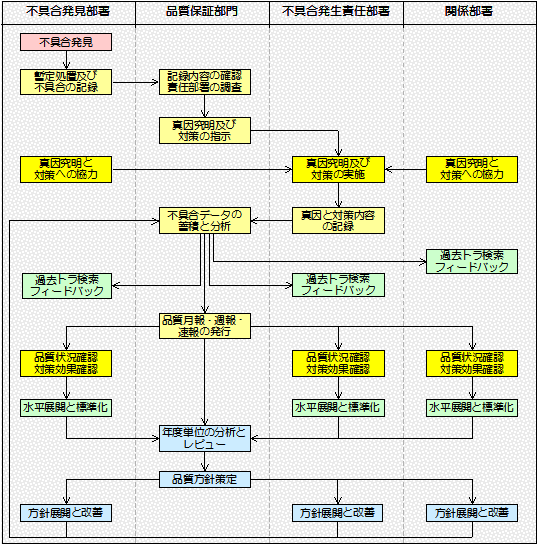 そこで、どの会社でも、 不具合を処理する仕組みの中に、 不具合をデータにして品質状況を 把握するということをしています。 |