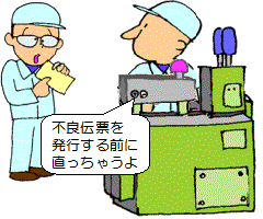| 作業終了時に1件のデータにまとめて 発行するようにしても良いでしょう。 このほか、 データ入力の方法を簡略化するなど、 きめ細かいシステムの運用ができる 工夫をして まず、ロスの実態を捉えてみましょう。 |