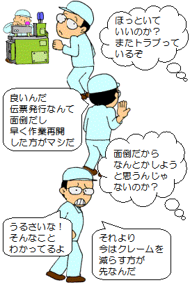 品質問題を 徹底的に解決していこうと思うならば、 こういう小さなロスも 確実に捉えられるような仕組みに なっていなければいけません。 |