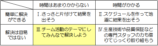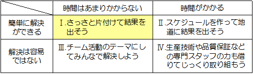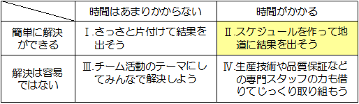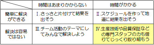 | しかし、目の前に現れた問題は、中身も違えば難易度もそれぞれです。 なんでもかんでも一緒くたにしては、 解決できるものも解決できなくなってしまいます。 |