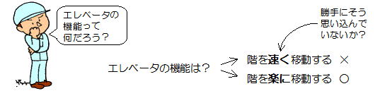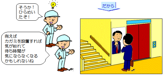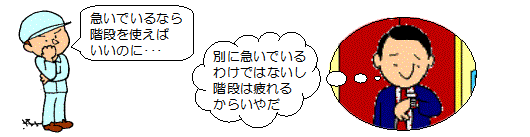 | あるとき、このエレベータが来るまでが 長く感じられるので何とかならないかと 改善を求められました。 |