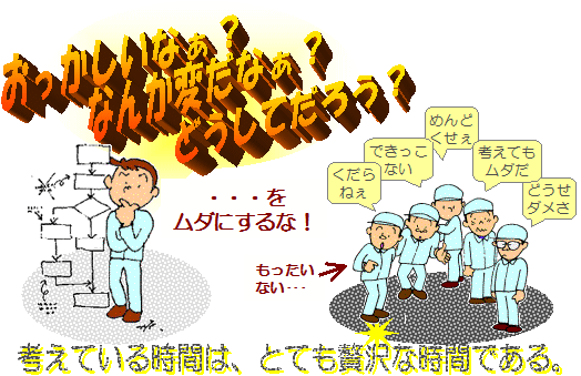 | 考えている時間というのはとても贅沢な時間です。 そして、会社の職場は考えるネタ=問題の宝庫です。 これを放っておくなんて本当にもったいないと思いませんか? |