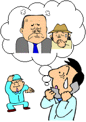 | いつも通り報告書を提出して一件落着と思いきや、 先月も同じ問題が発生したということで、 お客様がかなり怒っているという連絡が伝わって、 品質補償担当者は大慌てです。 |