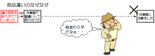 | こんなふうに問題の深掘りをやると、 ヒューマンエラーが実は全く異なる問題であることが見えてきます。 |