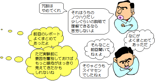 | A君の話を聞いていると、どうも、問題が大きければ大きいほど、 それにつり合うくらいの高級な手法を使わなければならないと 勘違いしているようです。 |