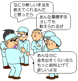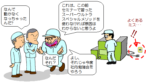 | そうなると、一体何のための勉強会だったのでしょうか。 緊急を要する問題解決にこんな悠長なことをやっていては絶対にもうかりません。 手法を知っていることと使えることは違います。 |