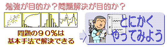 | 前(6.2)にもお話しましたが、問題の90%は基本手法で解決できます。 良い会社というのは、この基本手法を上手に活用できている会社です。 1以下のレベル(2.6)で、いくら高級な手法を振り回しても、 問題解決にはなりません。 |